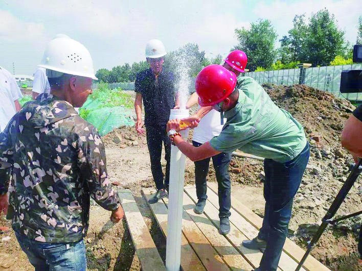 經(jīng)開區(qū)觀天下二期項(xiàng)目用水工程從報(bào)裝到通水僅用了40分鐘。圖為工作人員打開水管閥門。“驚喜!”20日, 上午,在經(jīng)開區(qū)觀天下二期項(xiàng)目的工地.上,吉林富騰集團(tuán)房地產(chǎn)開發(fā)有限責(zé)任公司總經(jīng)理助理陳中秋看著水管里冒出的水流,高興得合不攏嘴。